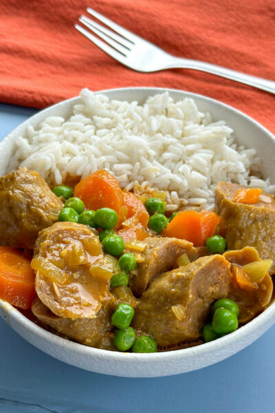 Easy Slow Cooker Curried Sausages with tender sausages, onion and a rich curry gravy. A warm, hearty family dinner made with simple ingredients and very little effort.