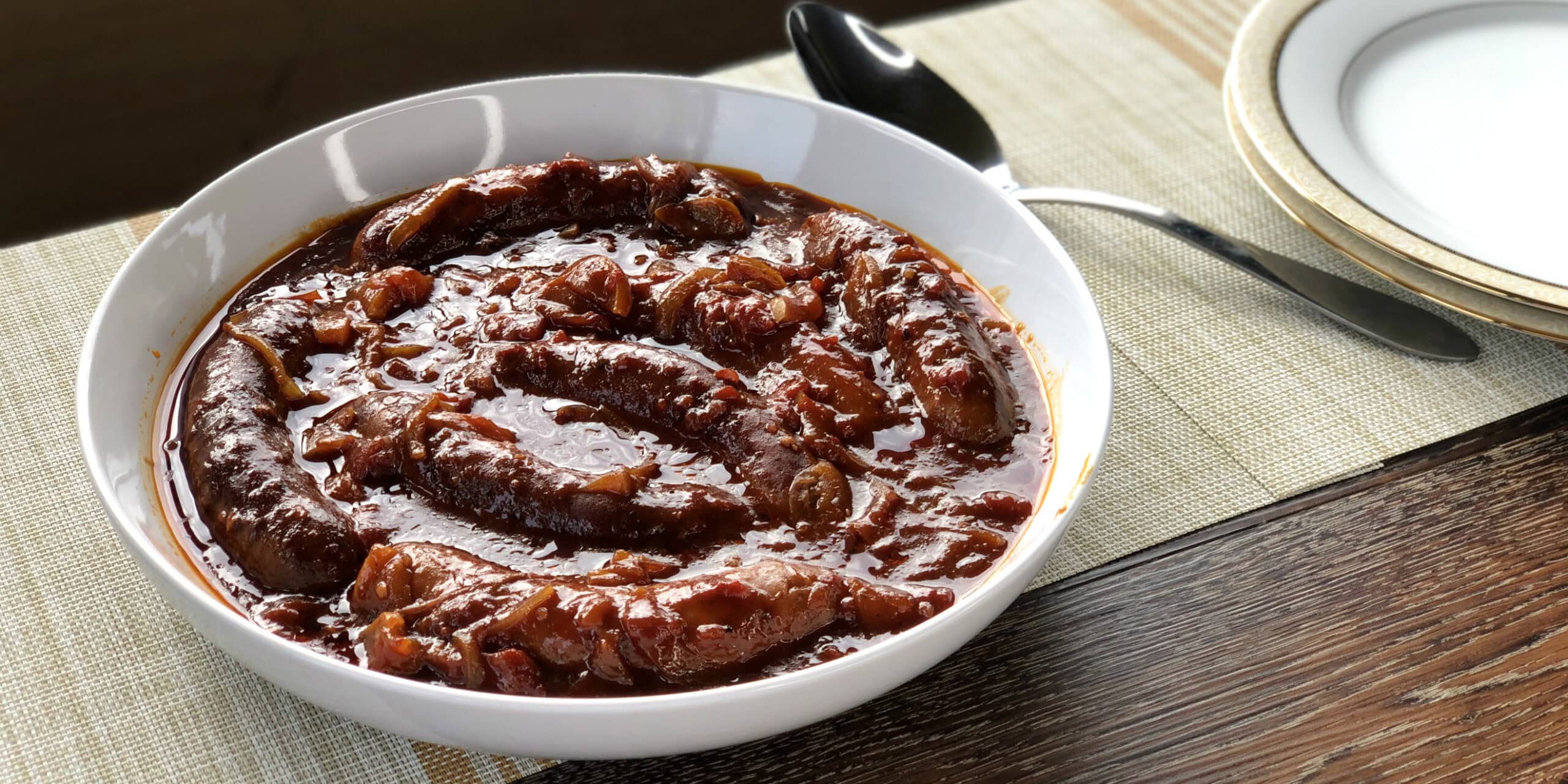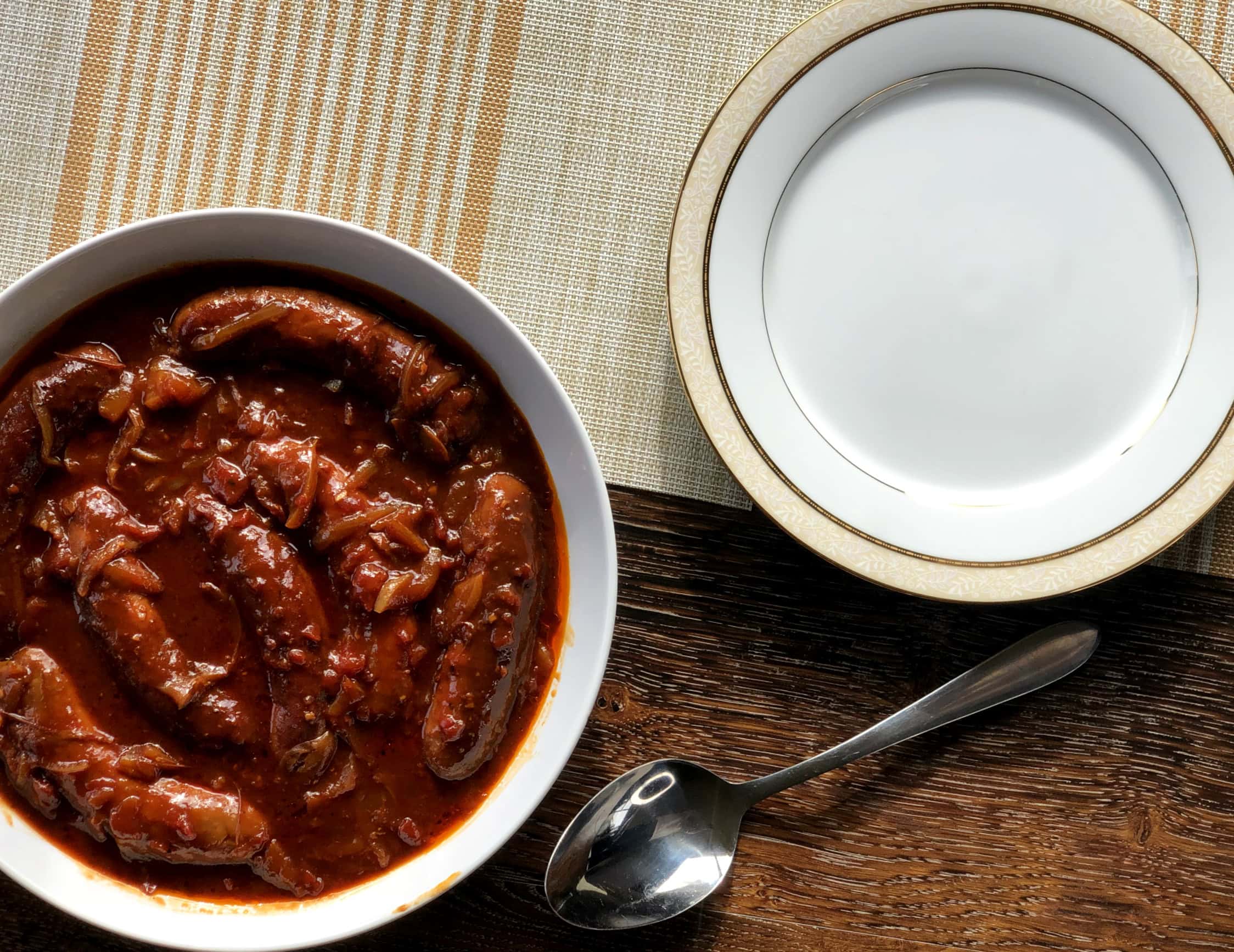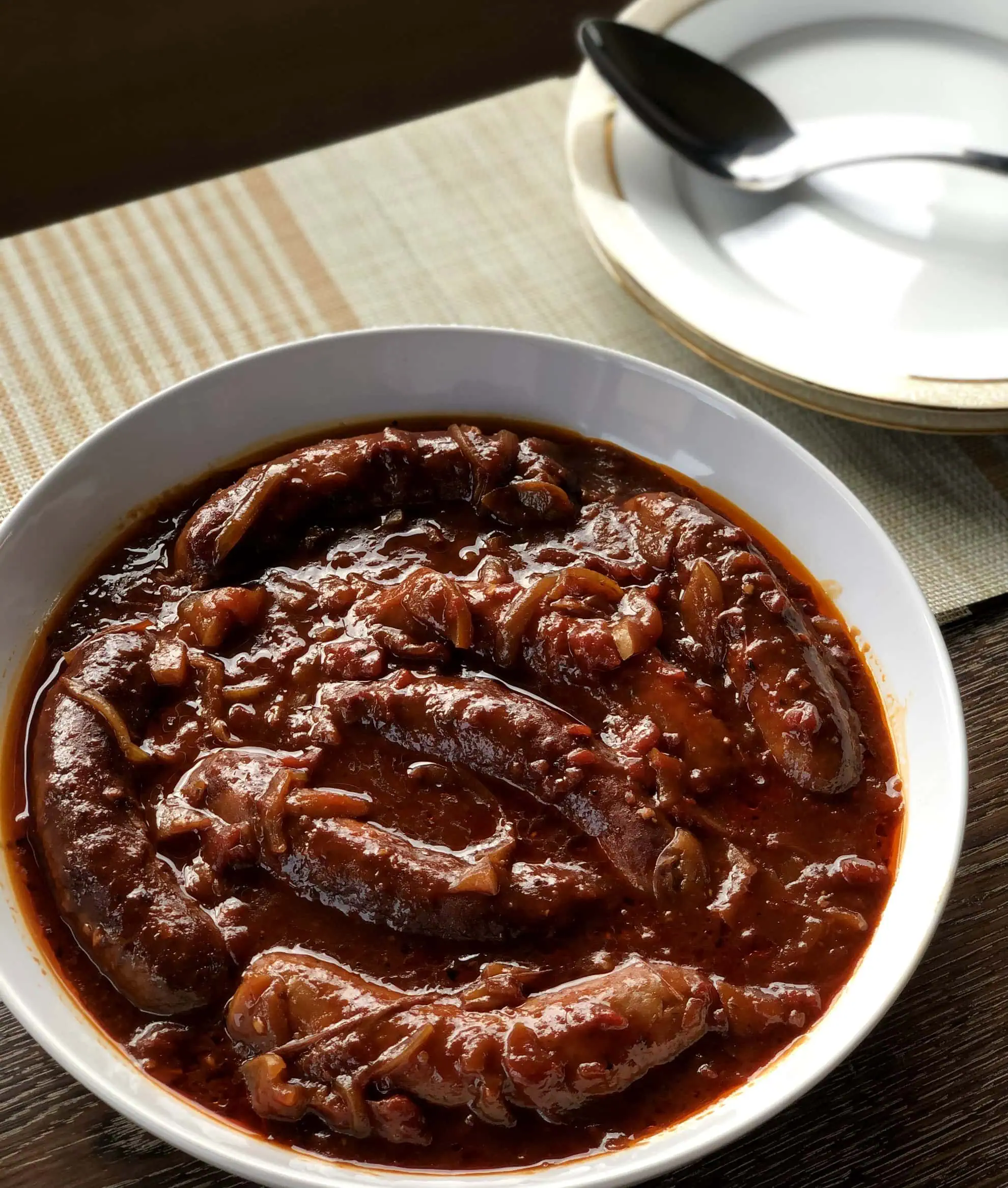 Delicious from scratch Devilled Sausages cooked in the slow cooker and very easy.