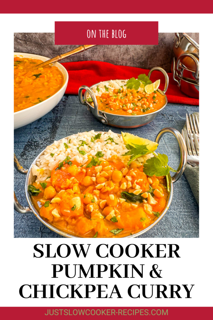 A lovely comforting slow cooker meal, this Pumpkin & Chickpea curry is perfect for a cosy winter night in.