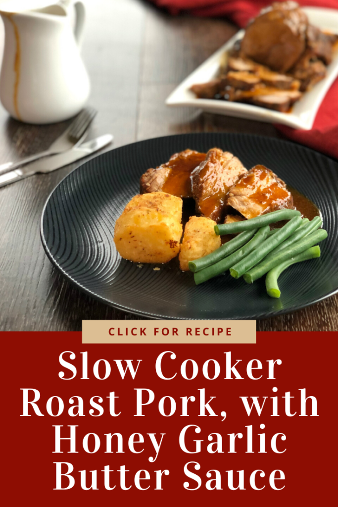 Slow cooker meals are perfect for busy households and perfect for winter warming meals. This Slow Cooker Roast Pork is absolutely delicious, smothered in a Honey Garlic Butter Gravy.