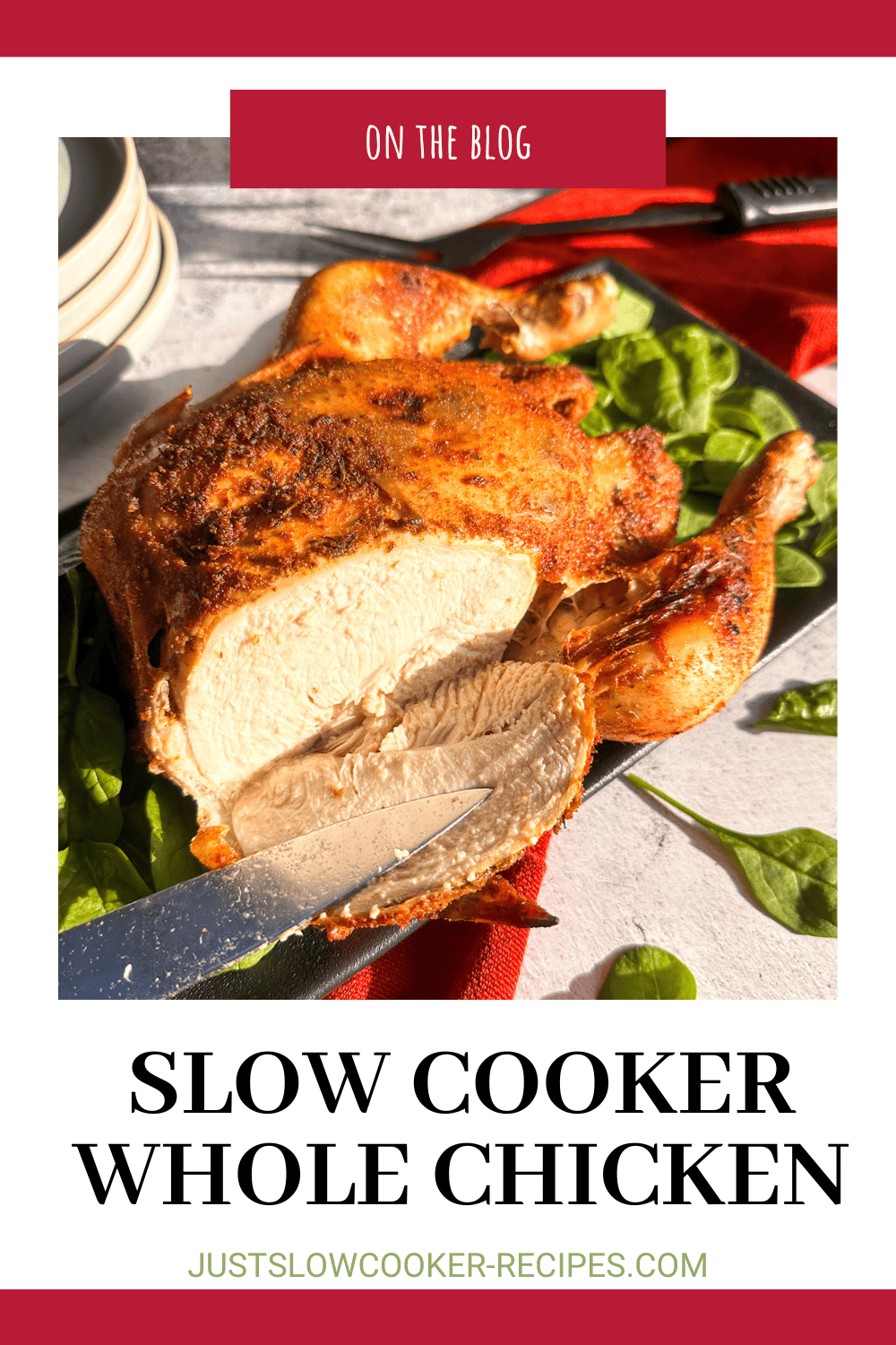 Delicious succulent, juicy, tender whole chicken, cooked in the slow cooker